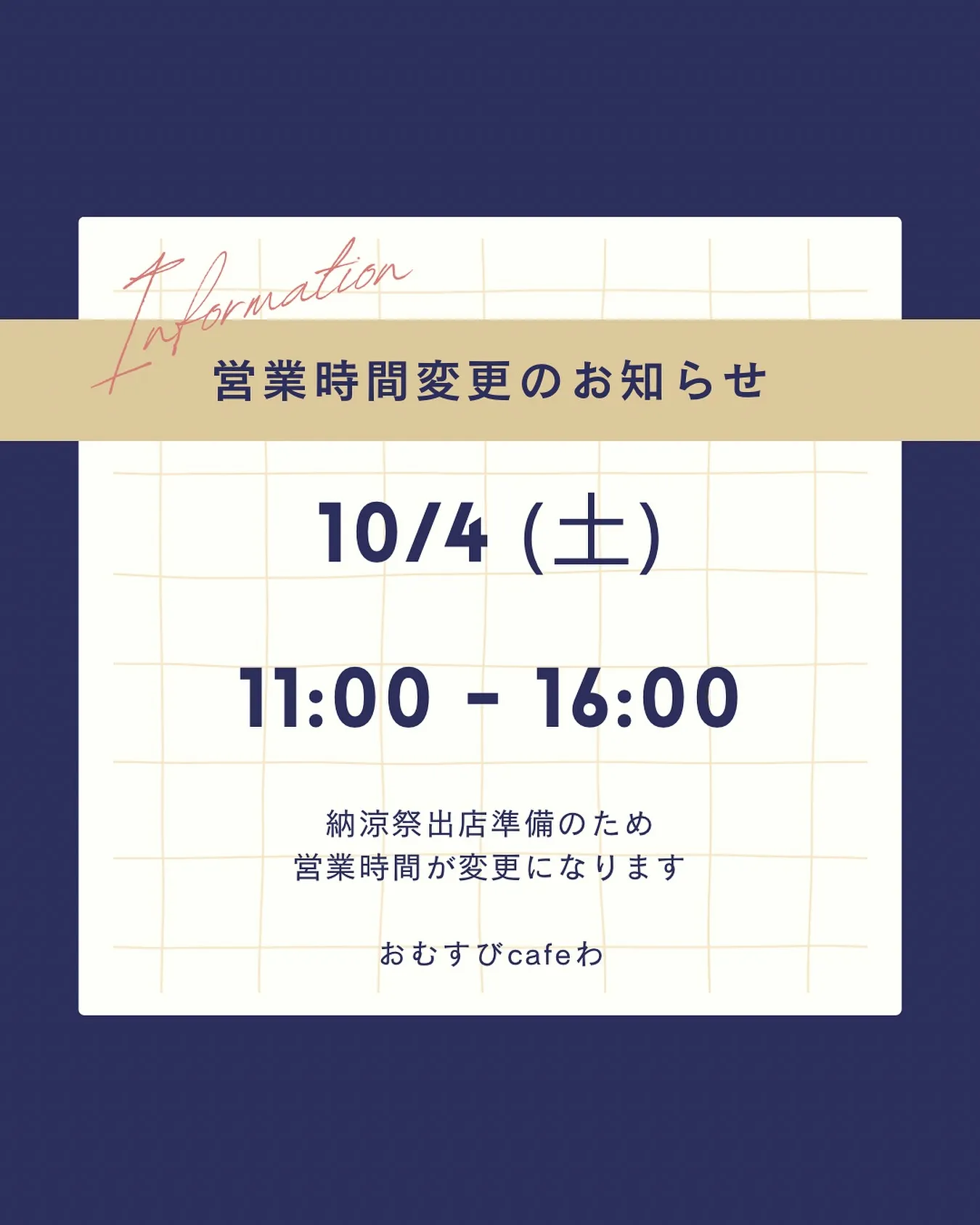 こんにちは☀️ こんにちは☀️営業時間変更のお知らせです-̗̀📢今週の土曜日(10月4日)の営業時間を納涼祭出店準備のため、11:00-16:00に変更させていただきます。メニューも通常とは異なり、下記のご提供ができません😢・こ…